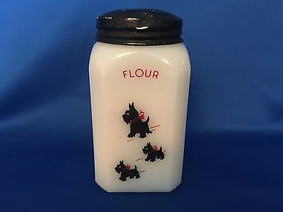 Vintage Scottie Scotty Flour Shaker Milk Glass Tipp City