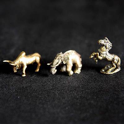 Thai Amulet Brass Statue Figurine Power Animals Lot x3 Elephant Horse Bull D28