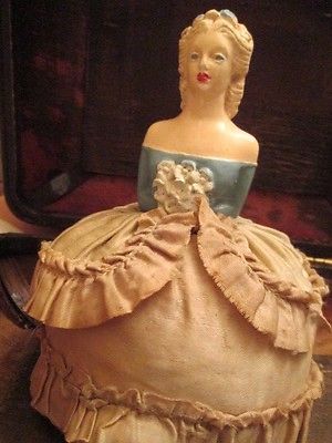 Antique Pincushion Chalk Ware Bouquet in Blue Doll 6"