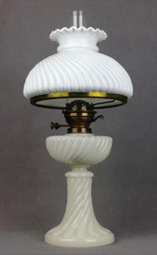 Title (ebay affiliate link): Victorian Baccarat Swirl Moulded Opal Kerosene Paraffin Duplex Oil Lamp