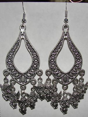 Title (ebay affiliate link): Long Antique Silver Oval Hoops With Cherubs, New Design