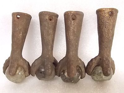 4 ORIGINAL vintage antique CAST IRON GLASS claw ball FEET architectural salvage