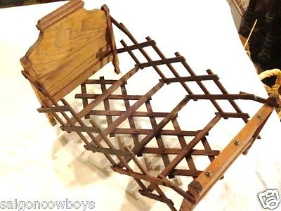 Title (ebay affiliate link): VINTAGE Antique Wooden Collapsable Doll Bed Furniture 16" Long Wood Craft Art