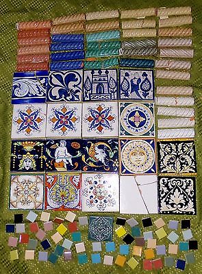 Lot of Antique Ceramic Decorative Tiles Borders Backsplash Furniture Fireplace