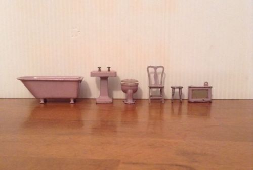Title (ebay affiliate link): Antique Vintage 1920's Tootsie Toy Metal Dollhouse Furniture Bathroom Set Orchid