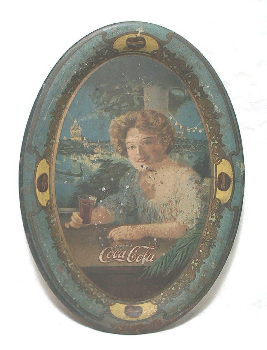 Title (ebay affiliate link): ORIGINAL ca. 1909 COCA COLA 6 1/4" OVAL TIN LITHO TIP TRAY