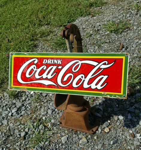 Title (ebay affiliate link): COCA COLA porcelain sign enamel motor oil vintage general store door push