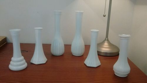 Lot of 6 milk glass bud vases