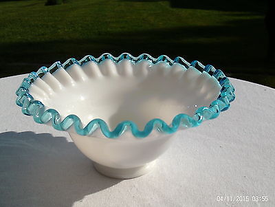 Fenton Art Glass Aqua Crest Bowl White Milk Glass