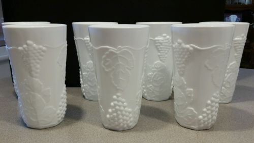 Title (ebay affiliate link): 7 VINTAGE WHITE MILK GLASS HARVEST GRAPES GLASSES/TUMBLERS