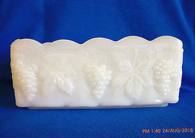 Title (ebay affiliate link): ANCHOR HOCKING. Milk Glass Grapes design planter. Rare. Made in the U.S.A. MINT.