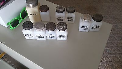 Vintage Antique Art Deco White Milk Glass Spice Jars - Set of 10
