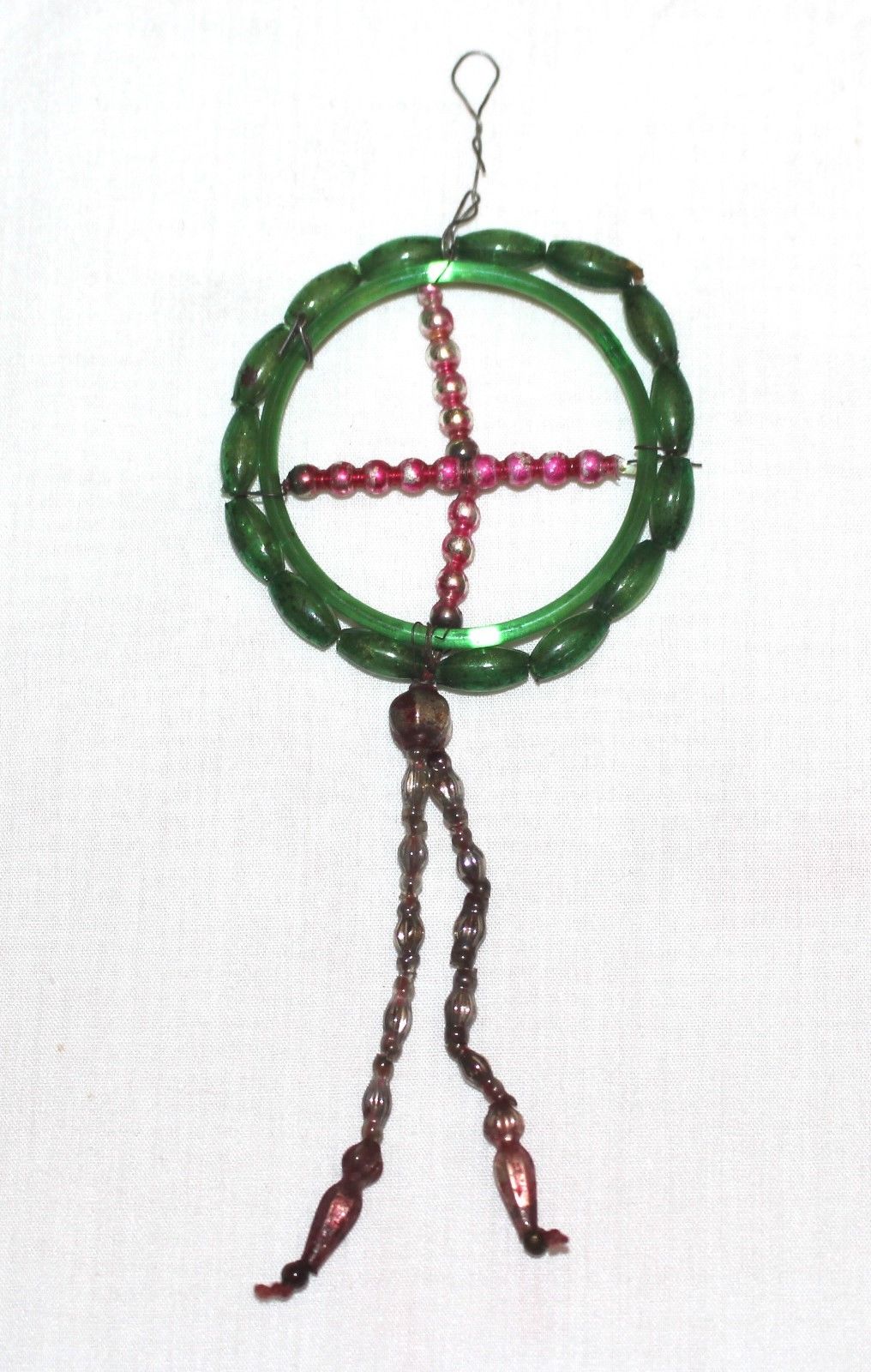 Title (ebay affiliate link): Early 1900s Green Glass Circle, Geo, with Red Bead Tail. Czechoslovakia. Great!
