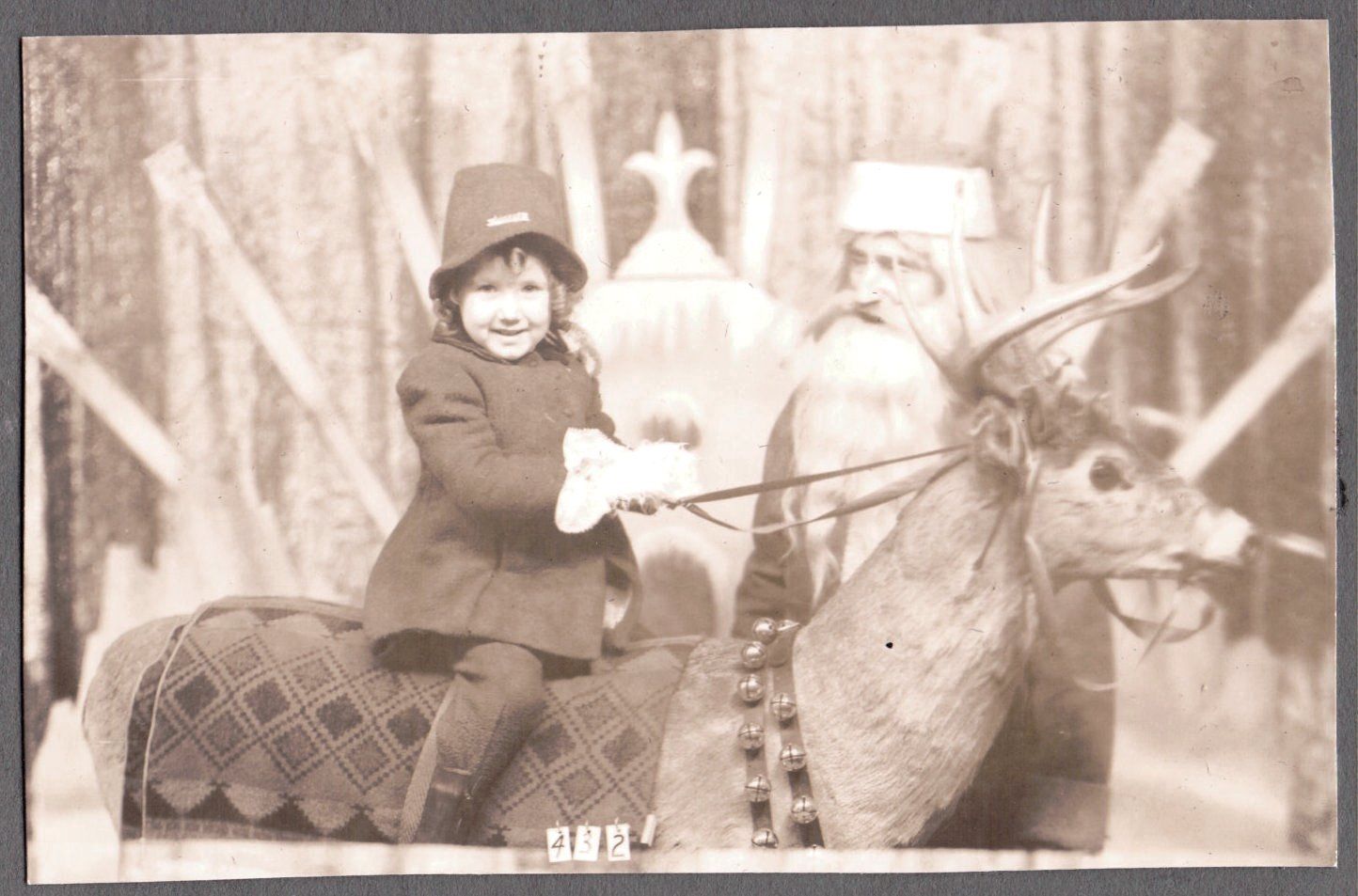 VINTAGE 1940'S CHRISTMAS SANTA CLAUS BUCK DEER BELLS GERMAIN WISCONSIN OLD PHOTO
