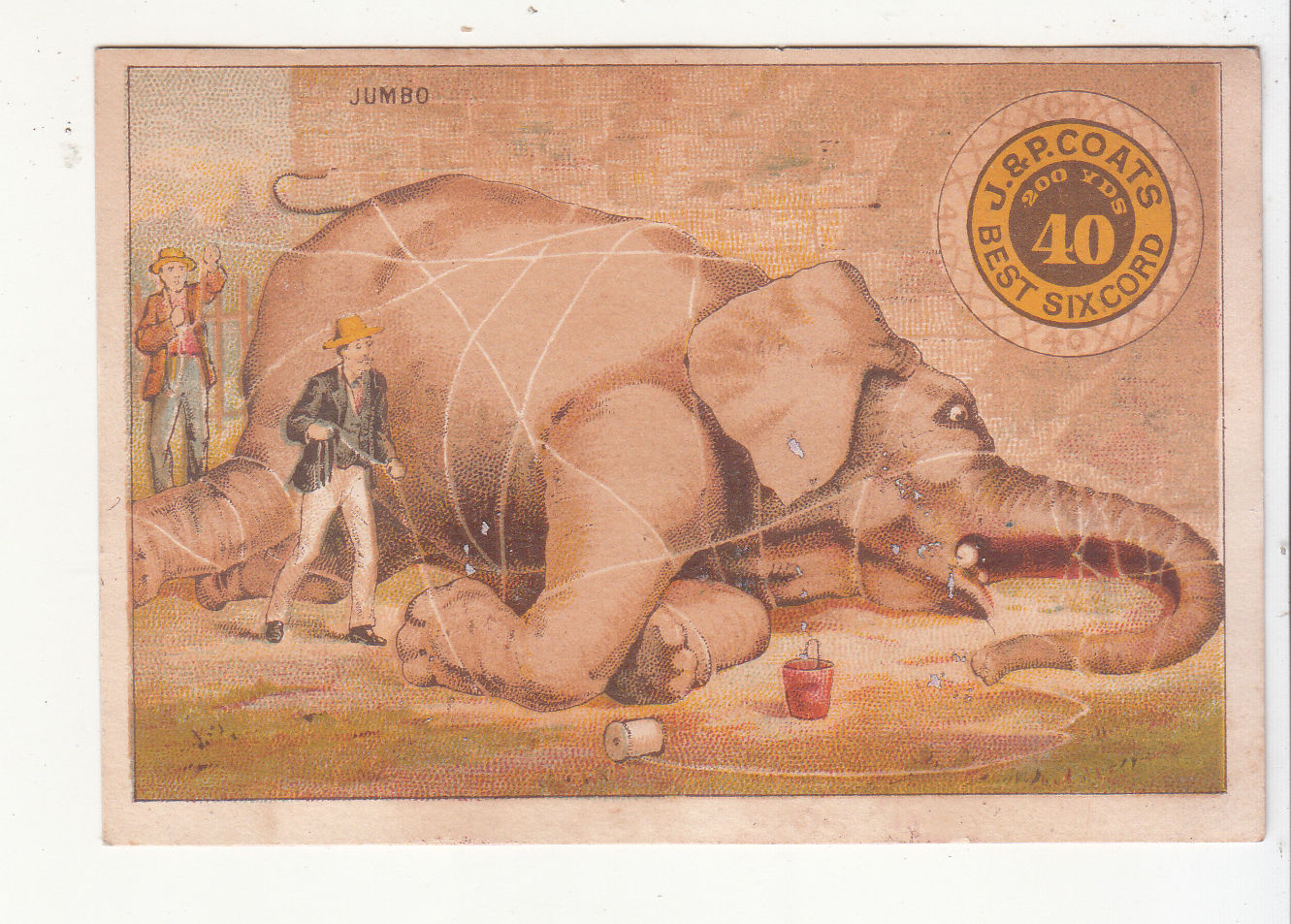 J & P Coats Six Cord Thread Jumbo Elephant Tied Up Victorian Card c 1880s
