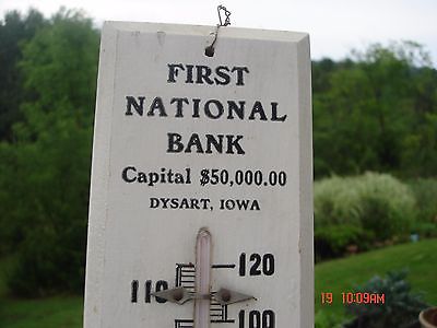 VINTAGE ADVERTISING WOODEN THERMOMETER 1ST NATIONAL BANK DYSART IOWA IA NICE