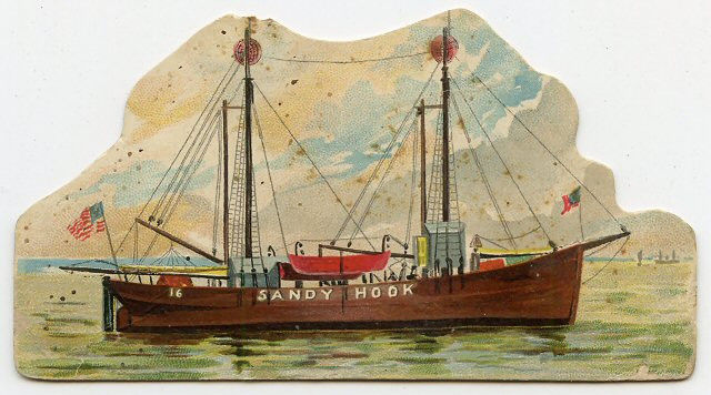 Title (ebay affiliate link): 1880s Sandy Hook Boat, Die Cut Victorian Trade/Tobacco Card, Honest Long Cut