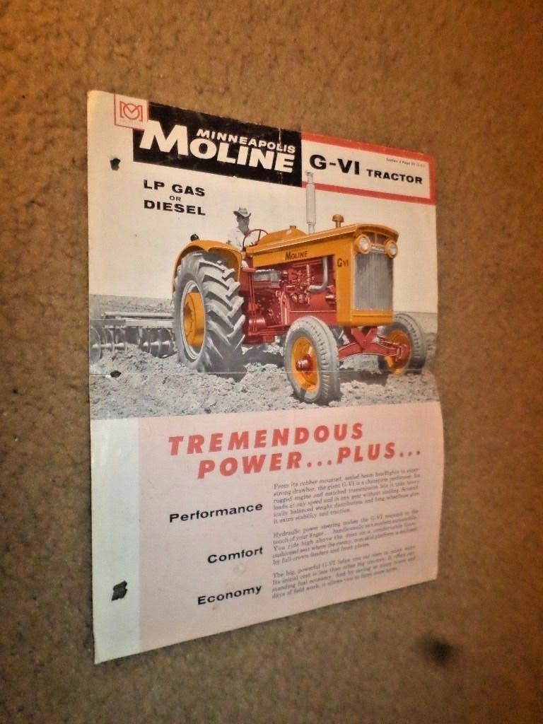 Title (ebay affiliate link): 1961 Minneapolis-Moline "Model 'G-VI' Tractor" Tractor Dealer Brochure