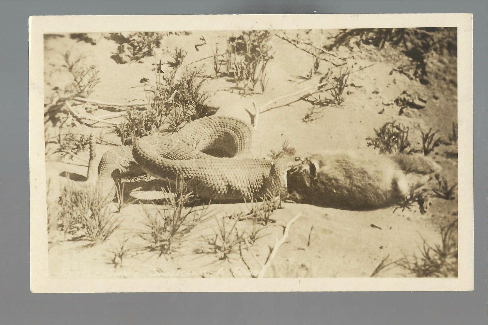 Gallup NEW MEXICO RP c1920s RATTLESNAKE Eating a RABBIT Swallowing Whole