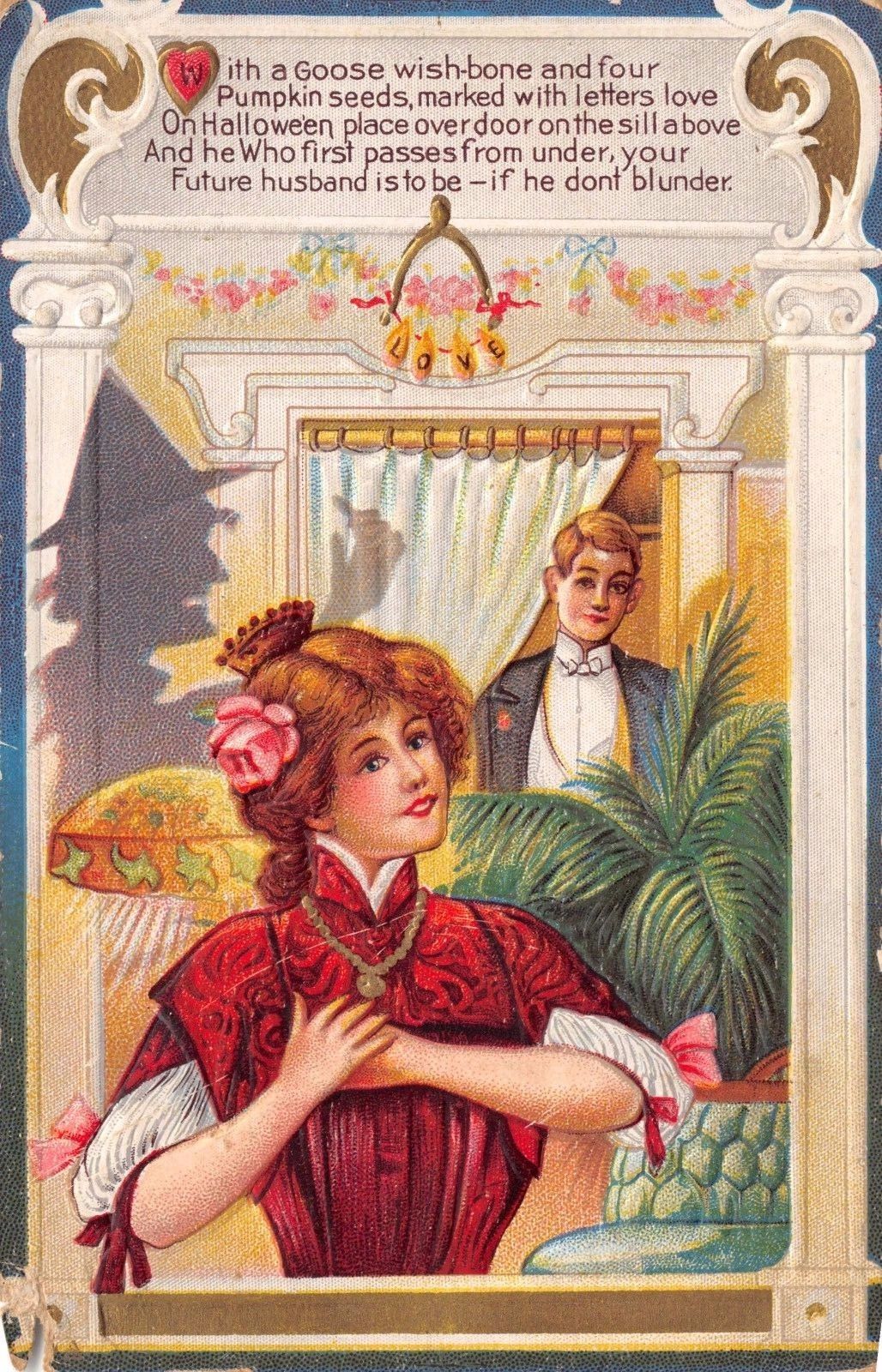 Title (ebay affiliate link): AU51 Halloween Postcard, Witch Shadow, courting couple