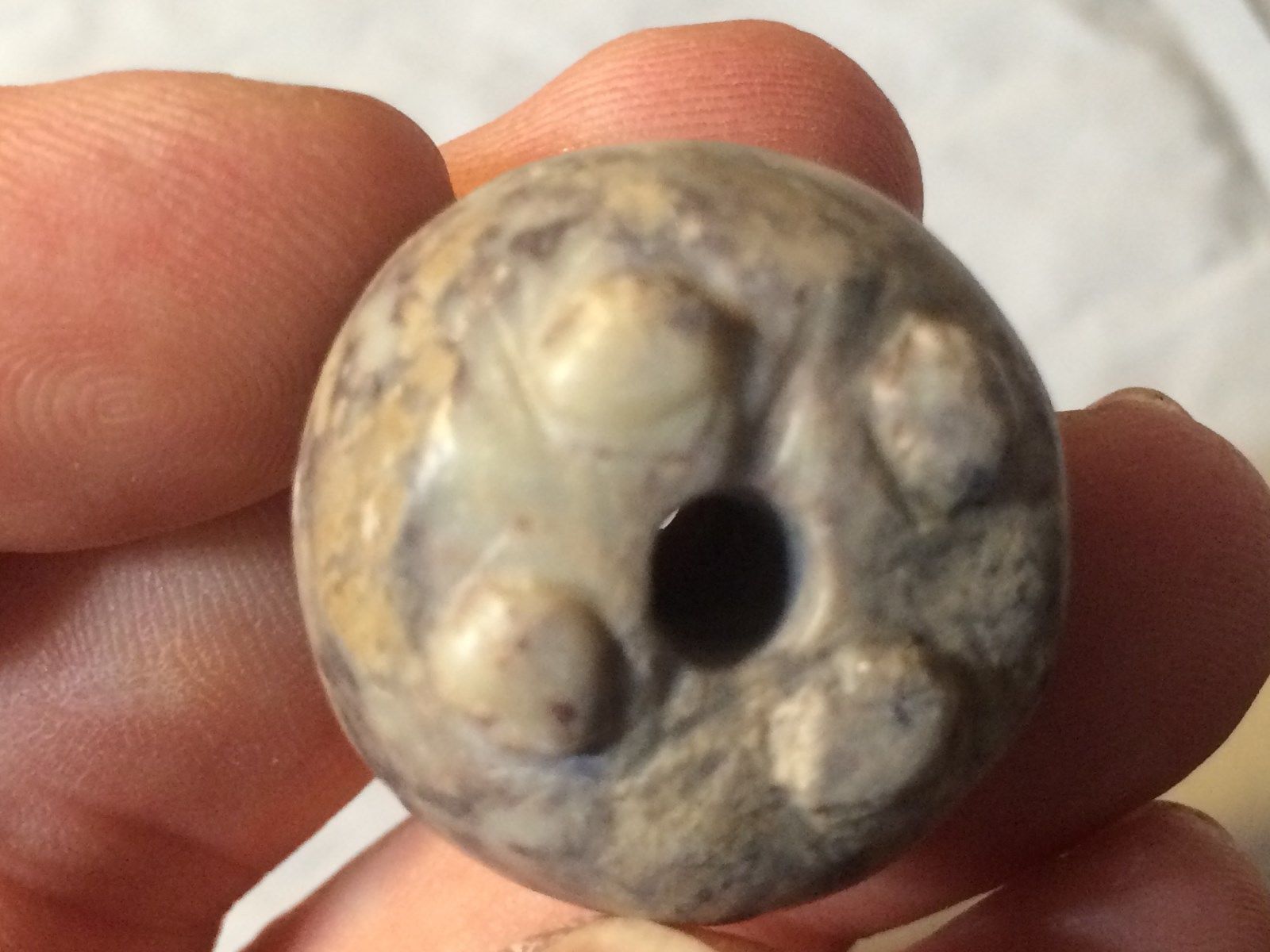 Title (ebay affiliate link): D41) Effigy Engraved Mayan Bead Pre-Columbian Stone Archaic Olmec Toltec Pendant