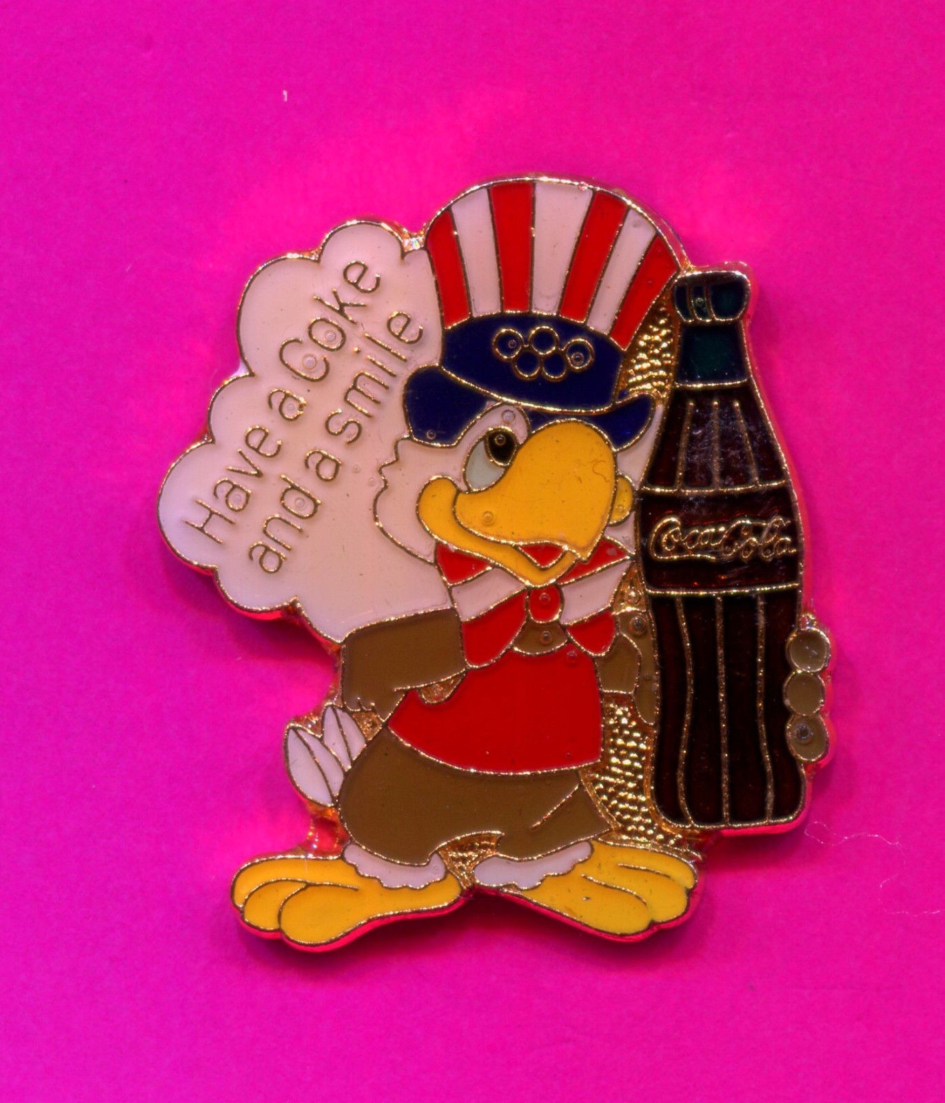Title (ebay affiliate link): 1984 OLYMPIC COCA COLA WHITE CLOUD SAM PIN HAVE A COKE AND A SMILE