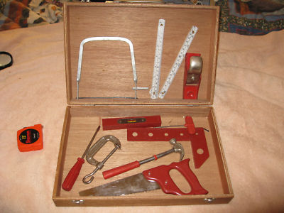 VINTAGE 10 PIECE CHILD/YOUTH WOODEN TOOLBOX SET NICE!!