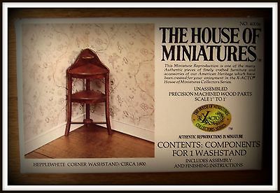 RARE DOLL HOUSE OF MINIATURE HEPPLEWHITE CORNER WASHSTAND KIT, ANTIQUE REPLICA