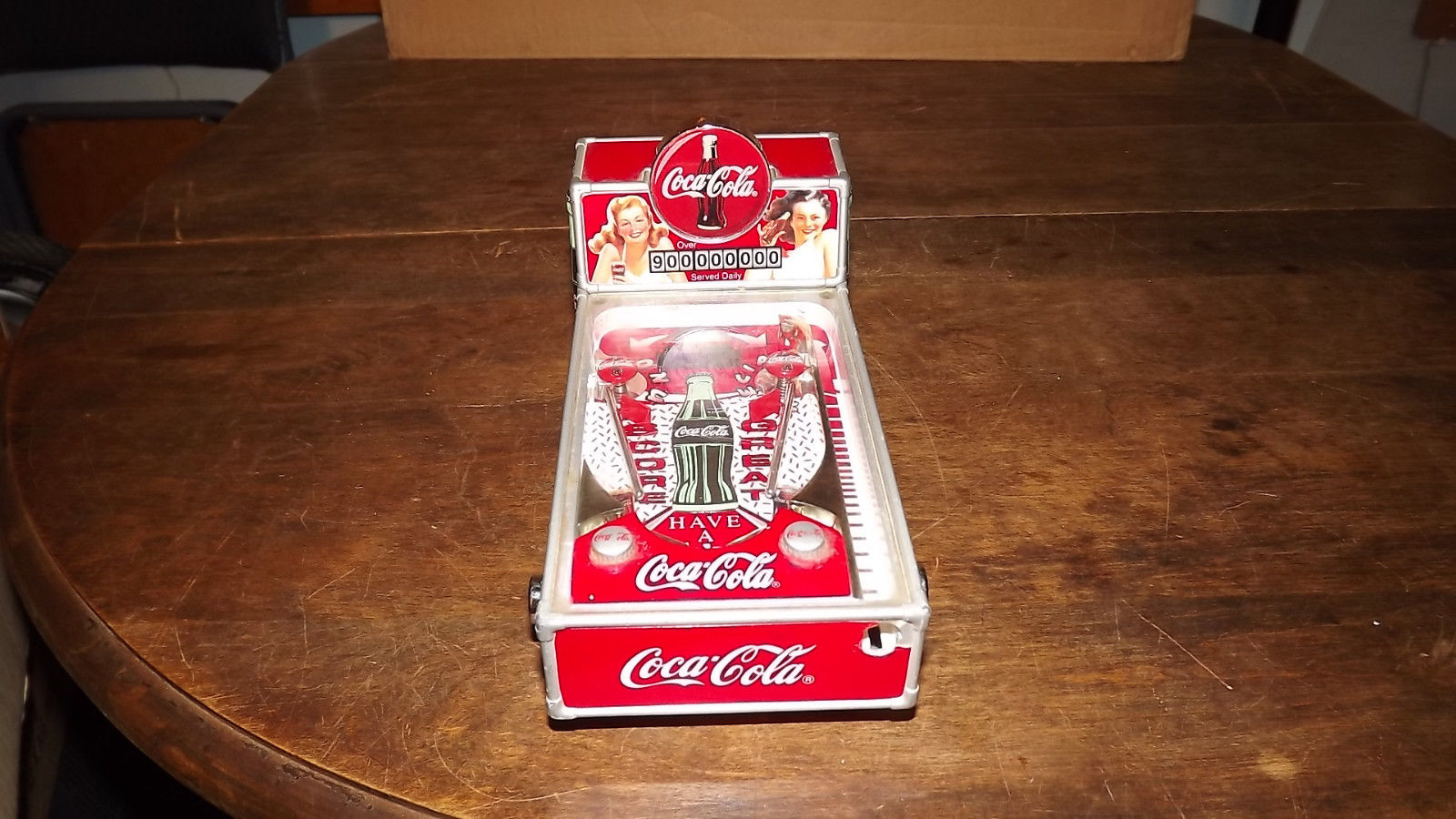Title (ebay affiliate link): 1998 Coca-Cola Pinball Machine DieCast Musical Bank by Enesco O806