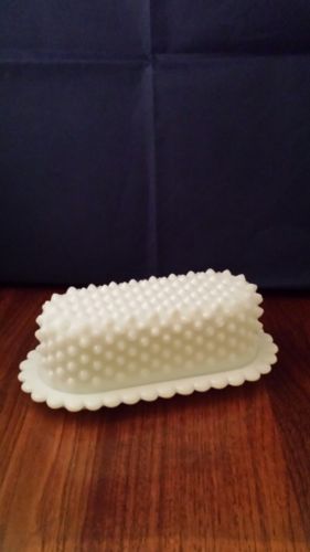 Fenton Milk Glass Hobnail Covered Oblong Butter Dish