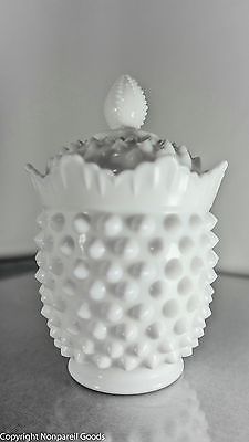 Title (ebay affiliate link): Vintage 1960s Fenton # 3606 Milk Glass Hobnail Covered Sugar with Lid