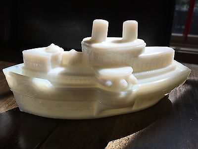 ESTATE SALE: Maine Battleship/PT Boat/Navy Covered Milk Glass Bowl/Dish (Ship)