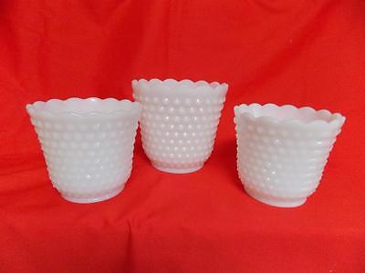 LOT OF 3 VINTAGE HOBNAIL MILK GLASS PLANTERS..FIRE KING