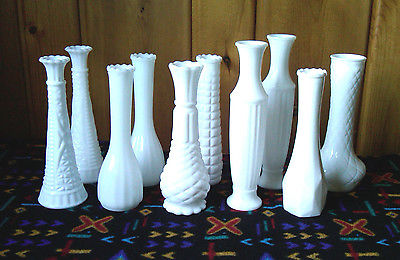 LOT of 10 VINTAGE ASSORTED MILK GLASS VASES