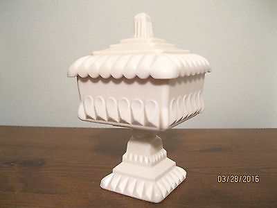 Vintage Jeanette Shell Pink Milk Glass Compote Candy Dish/Wedding Box, 1950's
