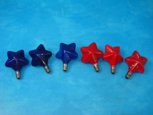 Title (ebay affiliate link): 6 VTG Star Red Blue Christmas Tree Fancy Figural Milkglass Light Bulbs Japan