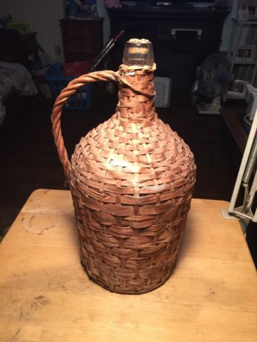 Title (ebay affiliate link): Antique Wicker Wrapped Wine Bottle ~ Vintage Tuscan French Carboy Demijohn