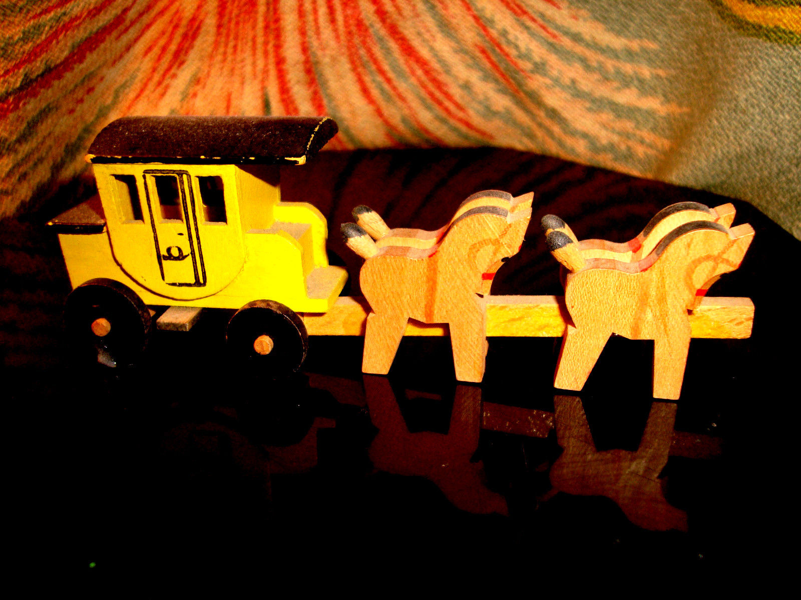 Antique GERMAN Putz Xmas Village Horses & Wooden Cart Rolling Wheels 4 3/4''