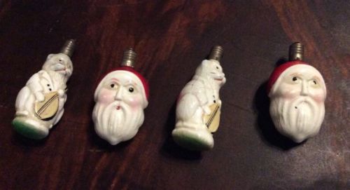 4 VINTAGE SMALL BASE CHRISTMAS XMAS TREE FIGURAL LIGHT BULBS SANTA & BANJO BEAR
