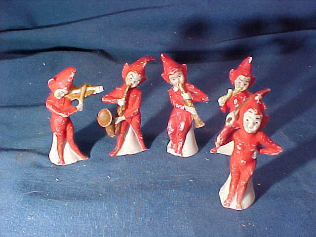 Title (ebay affiliate link): 5-1930s CHRISTMAS Village ELF BAND Figures HAND PAINTED BISQUE 2 1/2"