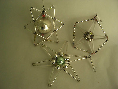 3 vintges bohemian glass beaded STARS CHRISTMAS ORNAMENTs