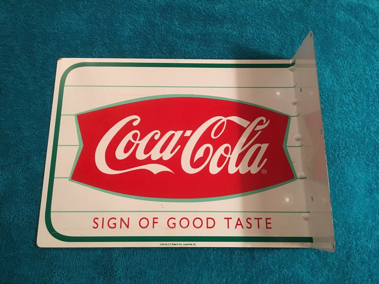 Title (ebay affiliate link): Coca Cola Fishtail Flange 2 Sided Metal Coke Sign 1999 New Old Stock