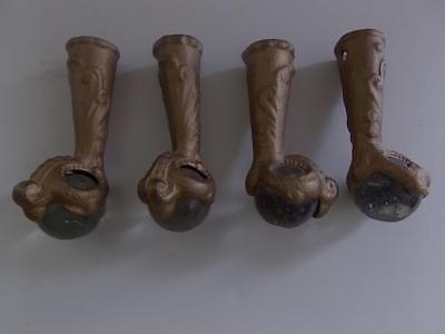 SET OF 4 MATCHING ANTIQUE CLAW FOOT AND GLASS PIANO STOOL / TABLE LEGS..BRASS