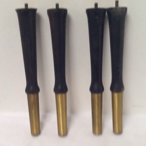 Vtg Set 4 TAPERED Wood wooden Legs Mid Century Danish Modern Table Stool w Brass