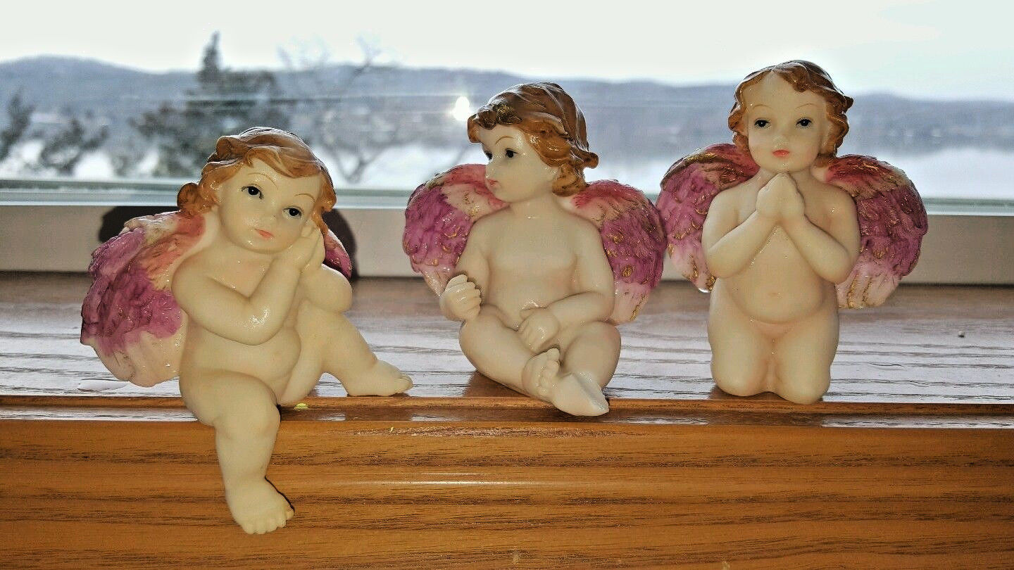 Title (ebay affiliate link): 3 RESIN ANGELIC SITTING KNEELING CHERUB ANGELS FIGURINES 2 1/2" TO 3" TALL
