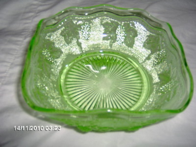 Title (ebay affiliate link): Green Depression Square Bowl MINT CONDITION-WOOLWORTH