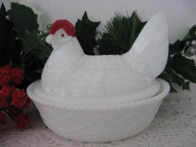 WESTMORELAND Milk Glass--CHICKEN ON NEST