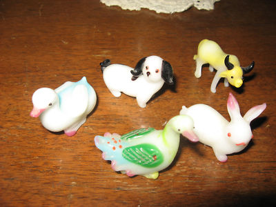 5 Miniature Milk Glass Figurines (Must See) 1"x1"