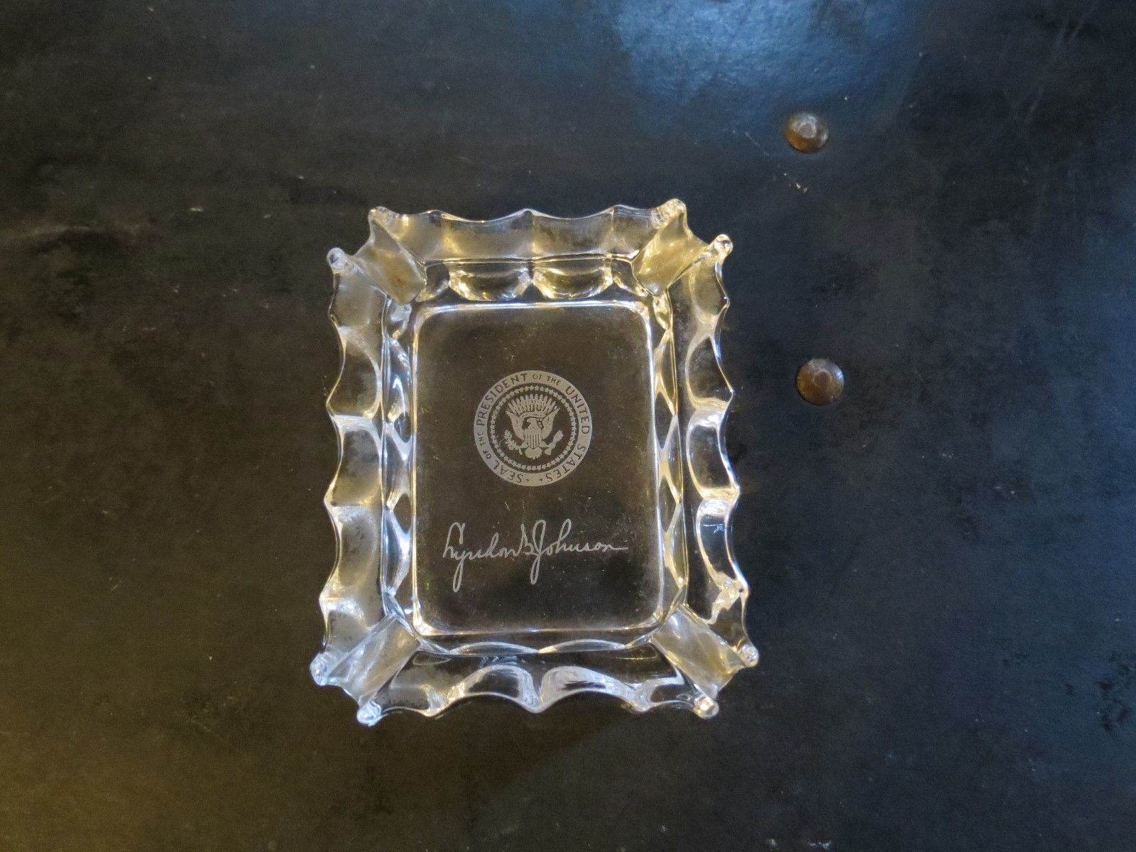 Title (ebay affiliate link): Vintage 1960's Lyndon B. Johnson Fostoria Ashtray Signature & Seal
