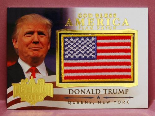 Title (ebay affiliate link): Decision 2016 Donald Trump God Bless America GOLD FOIL Flag Patch Insert #GBA18